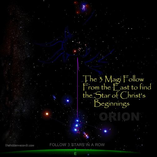 Note the three Orion's Belt stars correctly orientated above horizon as measured in ritual in the East align towards the sky where one star is located of importance.