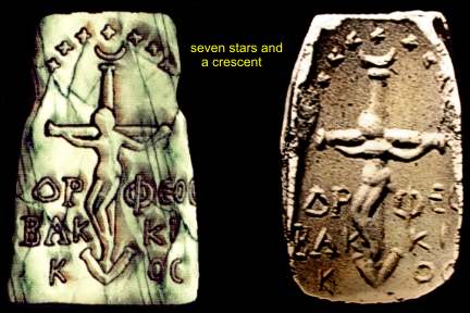 Here is a good story reference on the Bethsaida Bull head stela (ref) and how they try and tie the crescent symbols found with all the other artifacts as some sort of moon worship. Scholars would not for a moment consider the obvious interpretation of the crescent as a world of the 'gods' so one can understand the official standing interpretations are as they are... a mystery. Click the image below to see the precise star positions of what I claim as the star pattern formation that completes the ancient Cross of the churches.